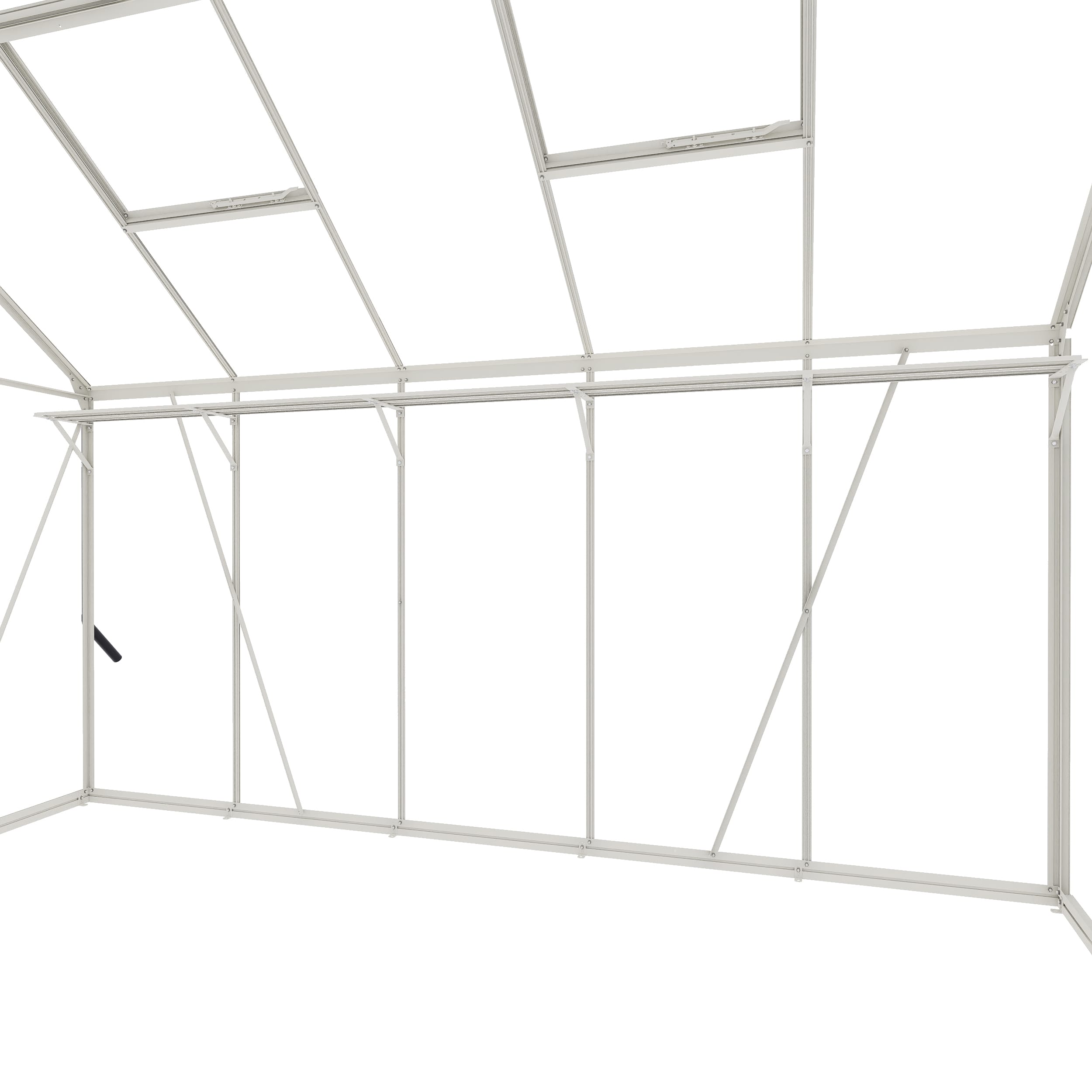 Maak optimaal gebruik van de ruimte in je kas. Een kweekschap creëert ruimte in je kas voor kweekpotjes, snoeischaar, bolletje touw, zakjes zaadjes en alle andere kleinere kweekbenodigdheden. Je kunt er zaadjes opkweken of jonge plantjes laten groeien. De constructie bestaat uit 2 leggers, dragers en schoren. Een solide verbinding met het kasframe wordt gemaakt met behulp van (hamerkop)bouten en moeren, standaardmaat M6. De hoogte bepaal je zelf doordat het schap instelbaar is. Het kweekschap is 22,5 cm diep en is bijpassend bij iedere kasmaat zodat de binnenmaat (diepte) van de kas netjes uitgevuld wordt.
