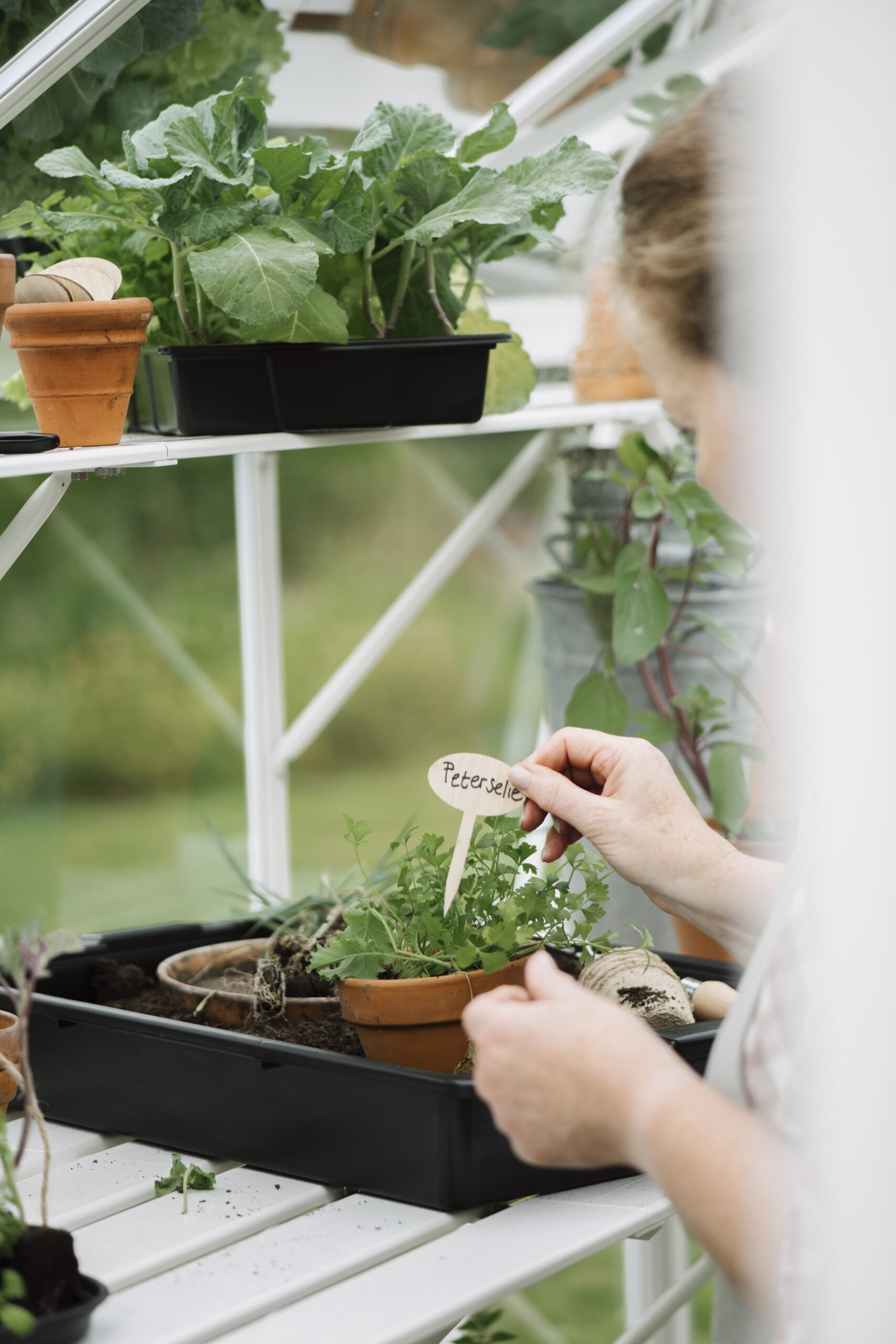 Maak optimaal gebruik van de ruimte in je kas. Een kweekschap creëert ruimte in je kas voor kweekpotjes, snoeischaar, bolletje touw, zakjes zaadjes en alle andere kleinere kweekbenodigdheden. Je kunt er zaadjes opkweken of jonge plantjes laten groeien. De constructie bestaat uit 2 leggers, dragers en schoren. Een solide verbinding met het kasframe wordt gemaakt met behulp van (hamerkop)bouten en moeren, standaardmaat M6. De hoogte bepaal je zelf doordat het schap instelbaar is. Het kweekschap is 22,5 cm diep en is bijpassend bij iedere kasmaat zodat de binnenmaat (diepte) van de kas netjes uitgevuld wordt.