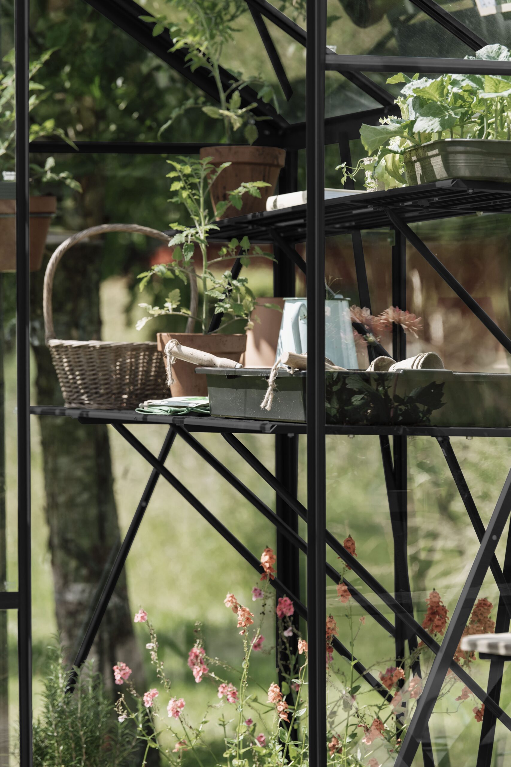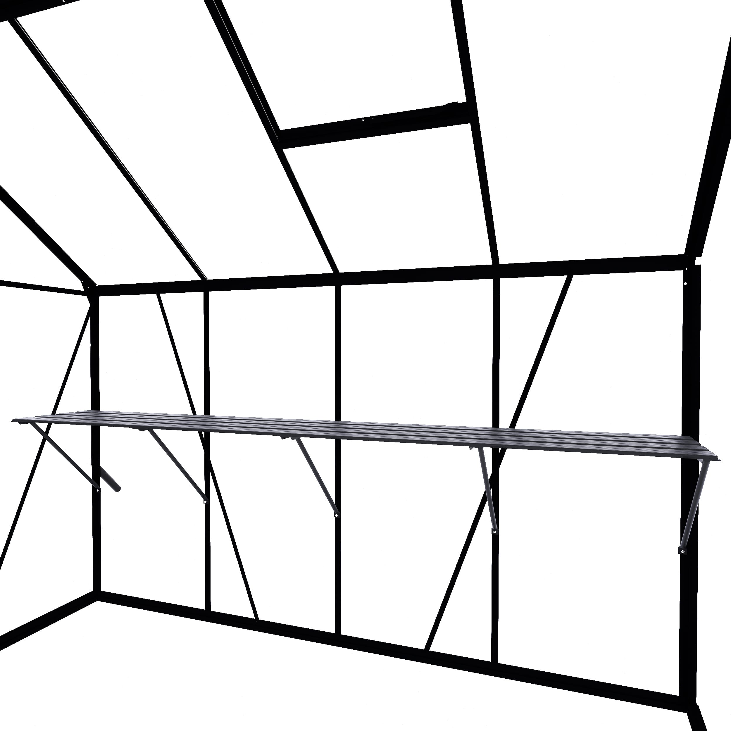 Een kweektafel biedt ruimte op werkhoogte in je kas voor zaaien, verpotten of watergeven. Of zet er materiaal neer die je vaak nodig hebt. De constructie bestaat uit 4 leggers, dragers en schoren. Een solide verbinding met het kasframe wordt gemaakt met behulp van (hamerkop)bouten en moeren, standaardmaat M6. De hoogte is instelbaar voor een optimale werkhouding, dus zaaien en kweken op jouw persoonlijke stahoogte. De kweektafel is 42,5 cm diep en is bijpassend bij iedere kasmaat zodat de binnenmaat (diepte) van de kas netjes uitgevuld wordt.