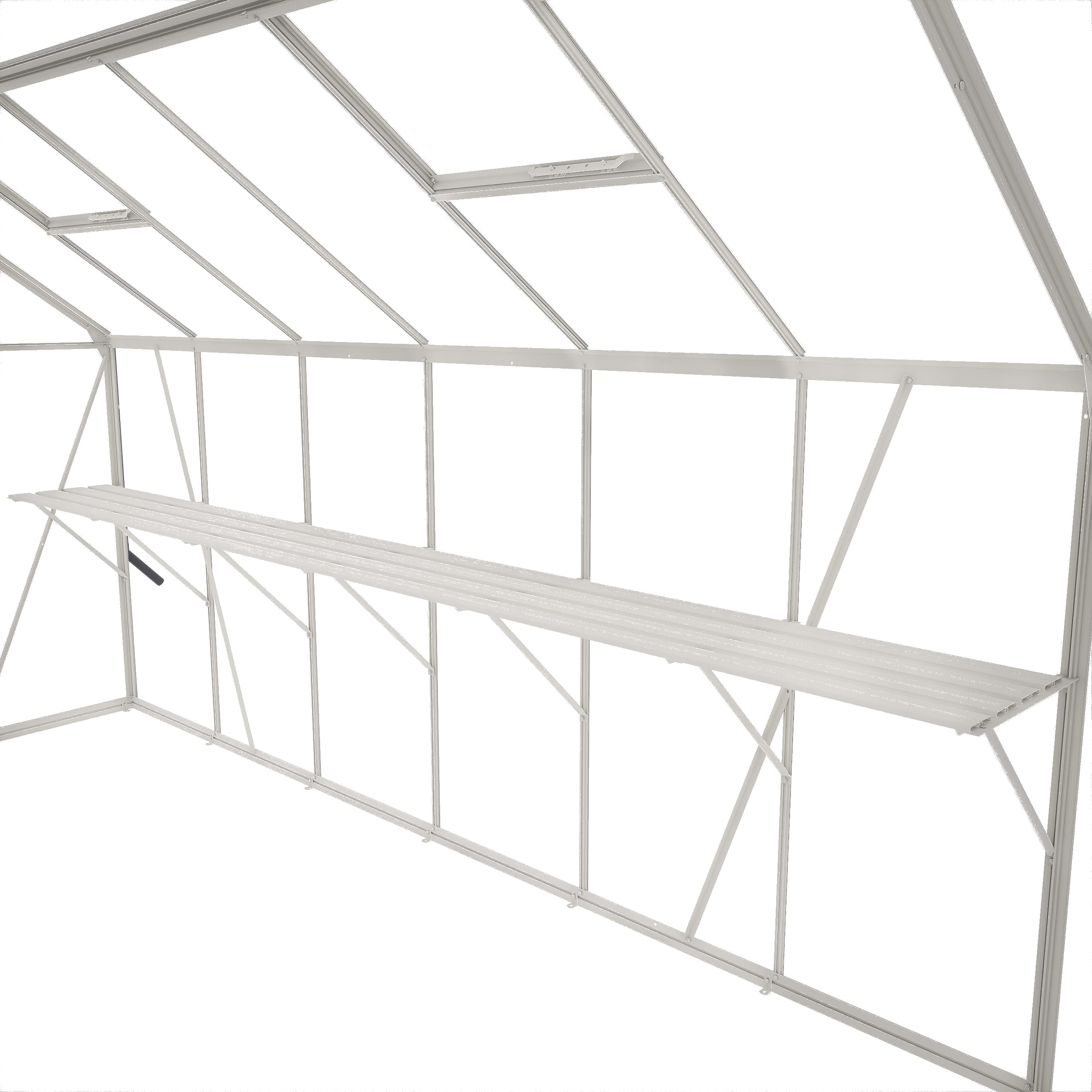 Een kweektafel biedt ruimte op werkhoogte in je kas voor zaaien, verpotten of watergeven. Of zet er materiaal neer die je vaak nodig hebt. De constructie bestaat uit 4 leggers, dragers en schoren. Een solide verbinding met het kasframe wordt gemaakt met behulp van (hamerkop)bouten en moeren, standaardmaat M6. De hoogte is instelbaar voor een optimale werkhouding, dus zaaien en kweken op jouw persoonlijke stahoogte. De kweektafel is 42,5 cm diep en is bijpassend bij iedere kasmaat zodat de binnenmaat (diepte) van de kas netjes uitgevuld wordt.
