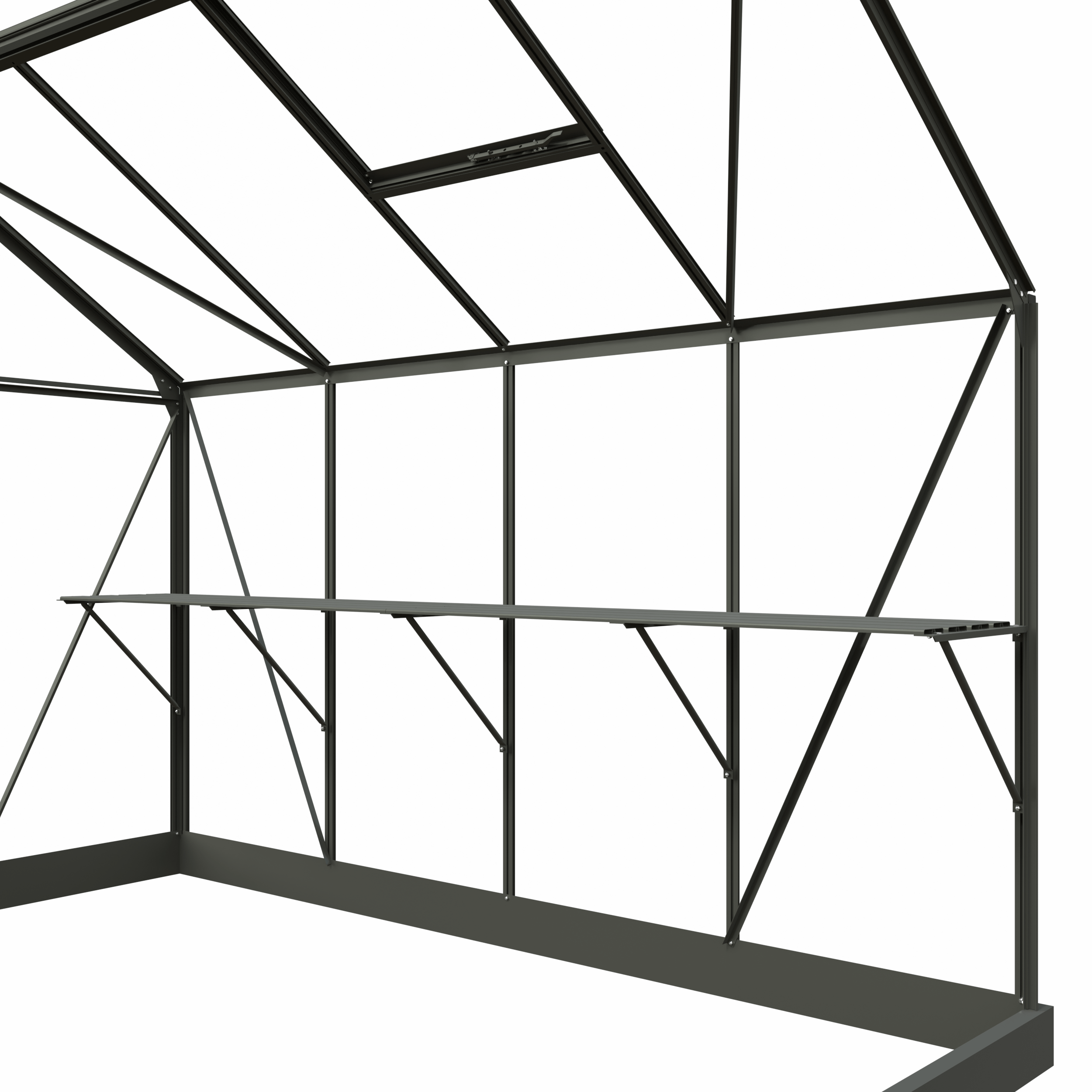Een kweektafel biedt ruimte op werkhoogte in je kas voor zaaien, verpotten of watergeven. Of zet er materiaal neer die je vaak nodig hebt. De constructie bestaat uit 4 leggers, dragers en schoren. Een solide verbinding met het kasframe wordt gemaakt met behulp van (hamerkop)bouten en moeren, standaardmaat M6. De hoogte is instelbaar voor een optimale werkhouding, dus zaaien en kweken op jouw persoonlijke stahoogte. De kweektafel is 42,5 cm diep en is bijpassend bij iedere kasmaat zodat de binnenmaat (diepte) van de kas netjes uitgevuld wordt.