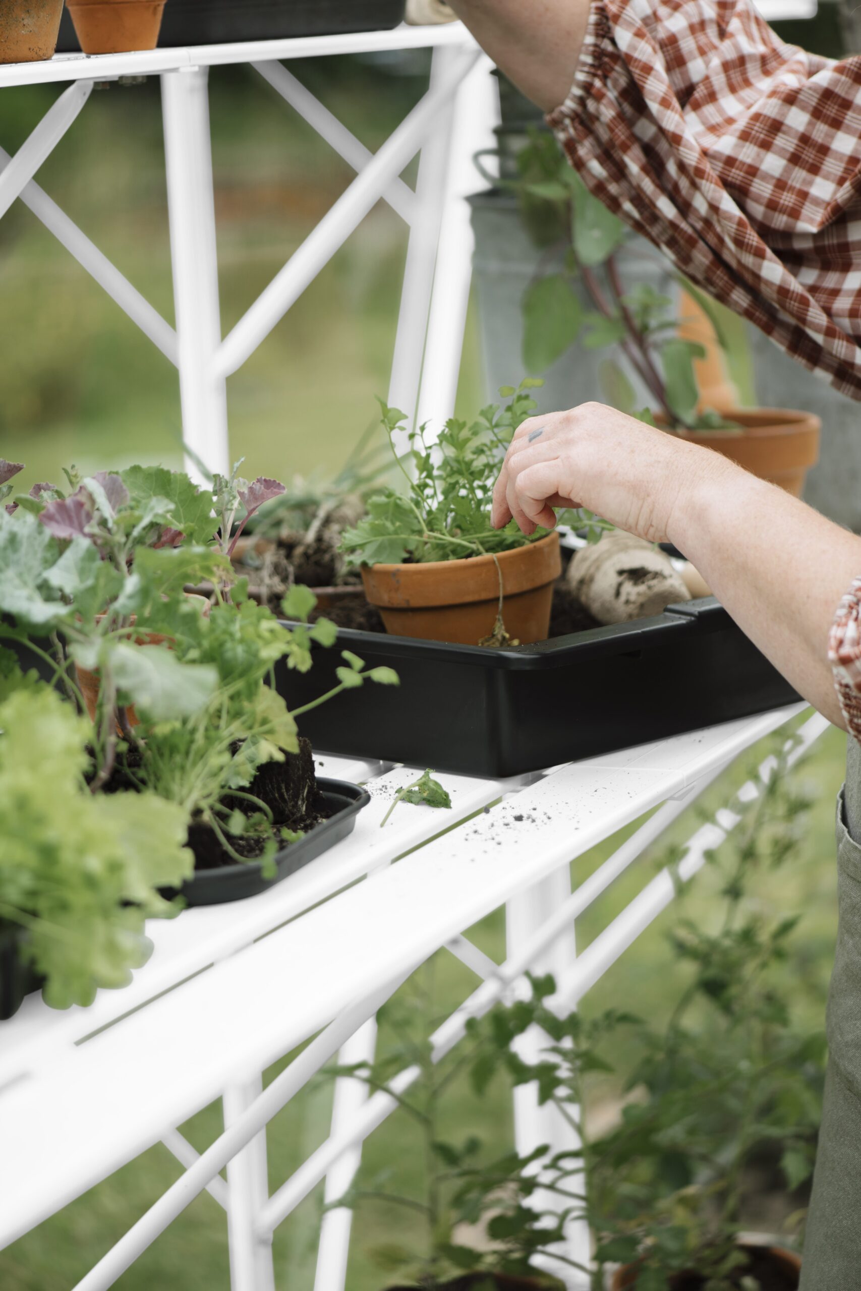 Een kweektafel biedt ruimte op werkhoogte in je kas voor zaaien, verpotten of watergeven. Of zet er materiaal neer die je vaak nodig hebt. De constructie bestaat uit 4 leggers, dragers en schoren. Een solide verbinding met het kasframe wordt gemaakt met behulp van (hamerkop)bouten en moeren, standaardmaat M6. De hoogte is instelbaar voor een optimale werkhouding, dus zaaien en kweken op jouw persoonlijke stahoogte. De kweektafel is 42,5 cm diep en is bijpassend bij iedere kasmaat zodat de binnenmaat (diepte) van de kas netjes uitgevuld wordt.