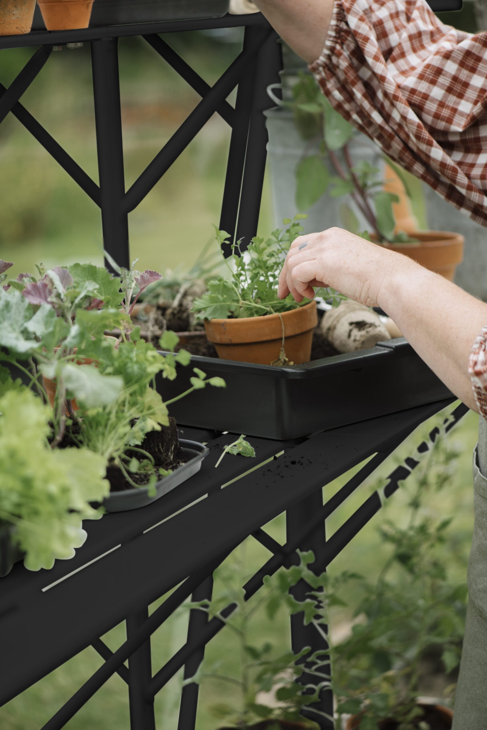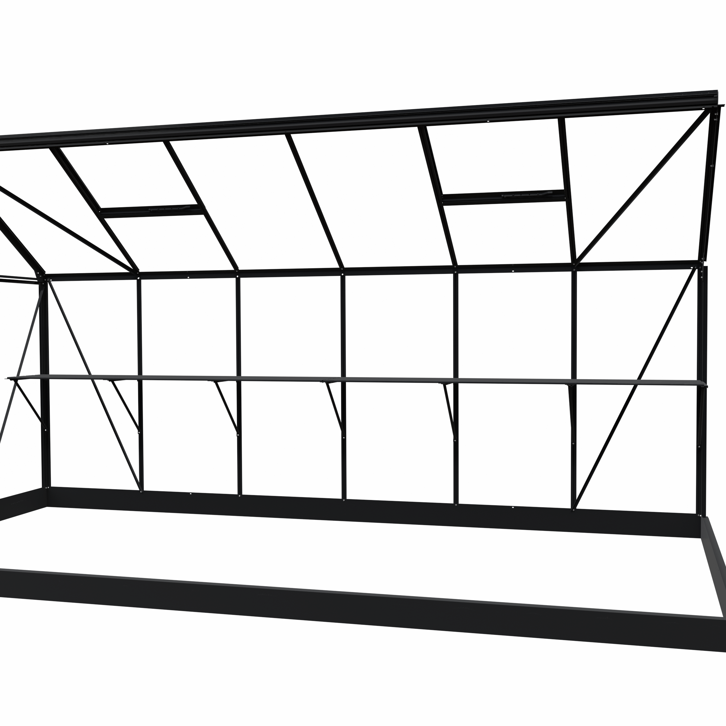 Een kweektafel biedt ruimte op werkhoogte in je kas voor zaaien, verpotten of watergeven. Of zet er materiaal neer die je vaak nodig hebt. De constructie bestaat uit 4 leggers, dragers en schoren. Een solide verbinding met het kasframe wordt gemaakt met behulp van (hamerkop)bouten en moeren, standaardmaat M6. De hoogte is instelbaar voor een optimale werkhouding, dus zaaien en kweken op jouw persoonlijke stahoogte. De kweektafel is 42,5 cm diep en is bijpassend bij iedere kasmaat zodat de binnenmaat (diepte) van de kas netjes uitgevuld wordt.