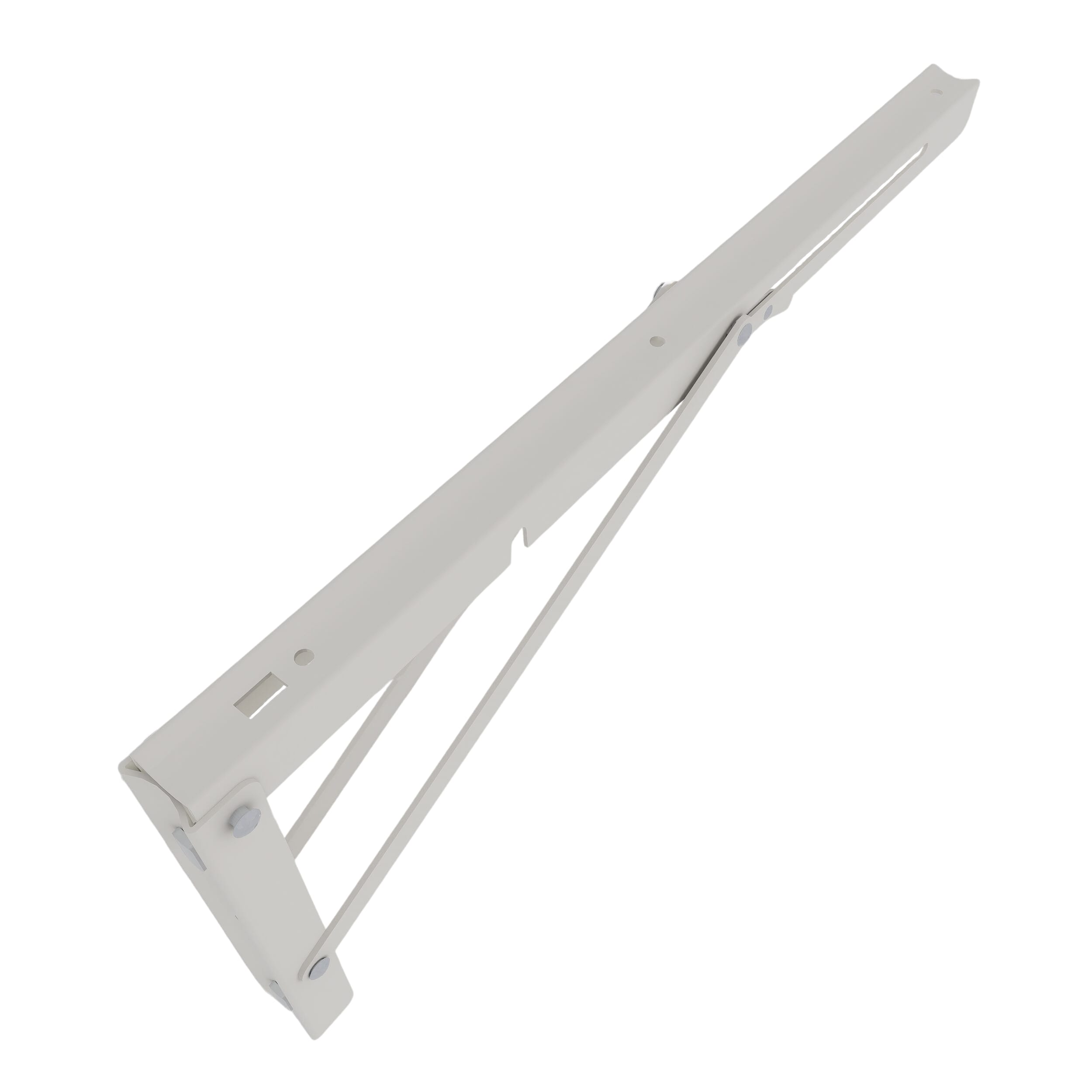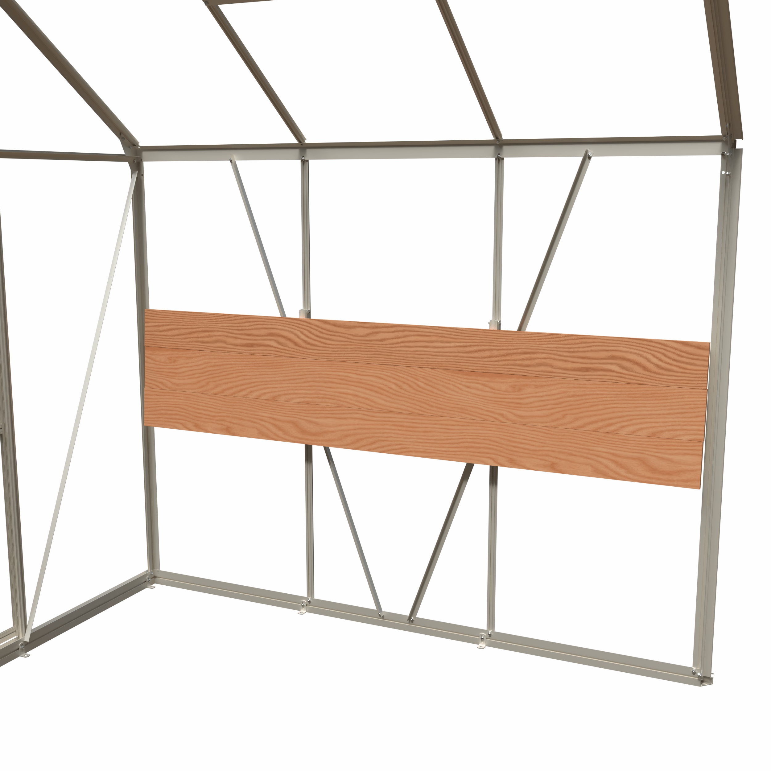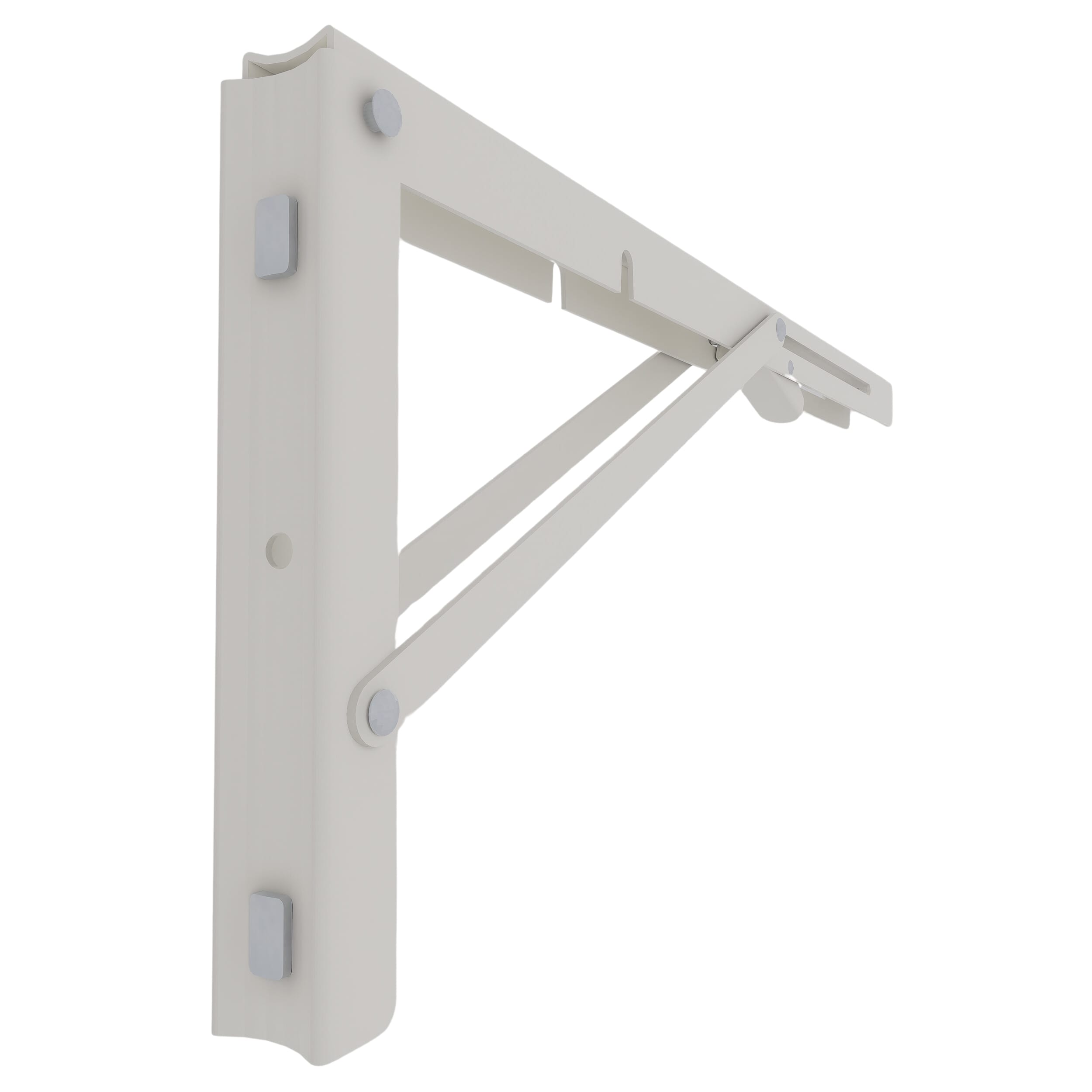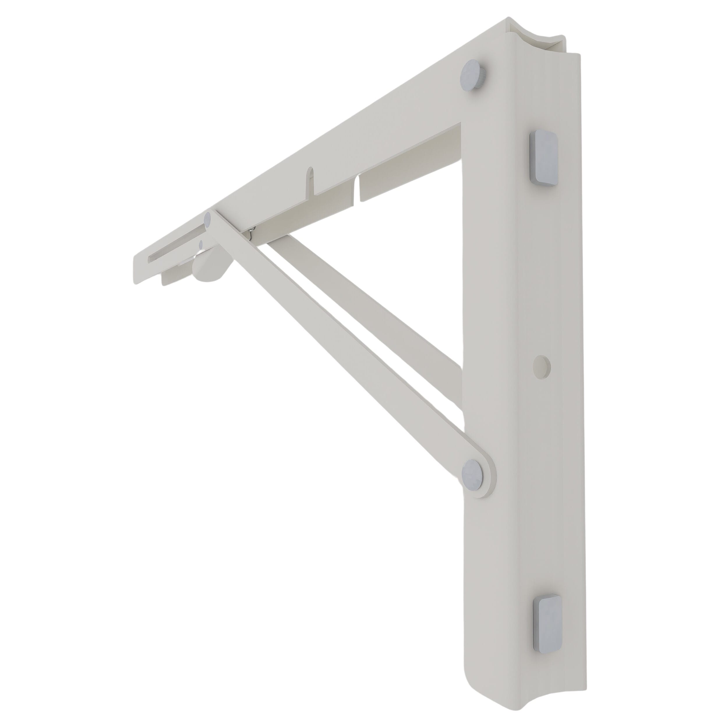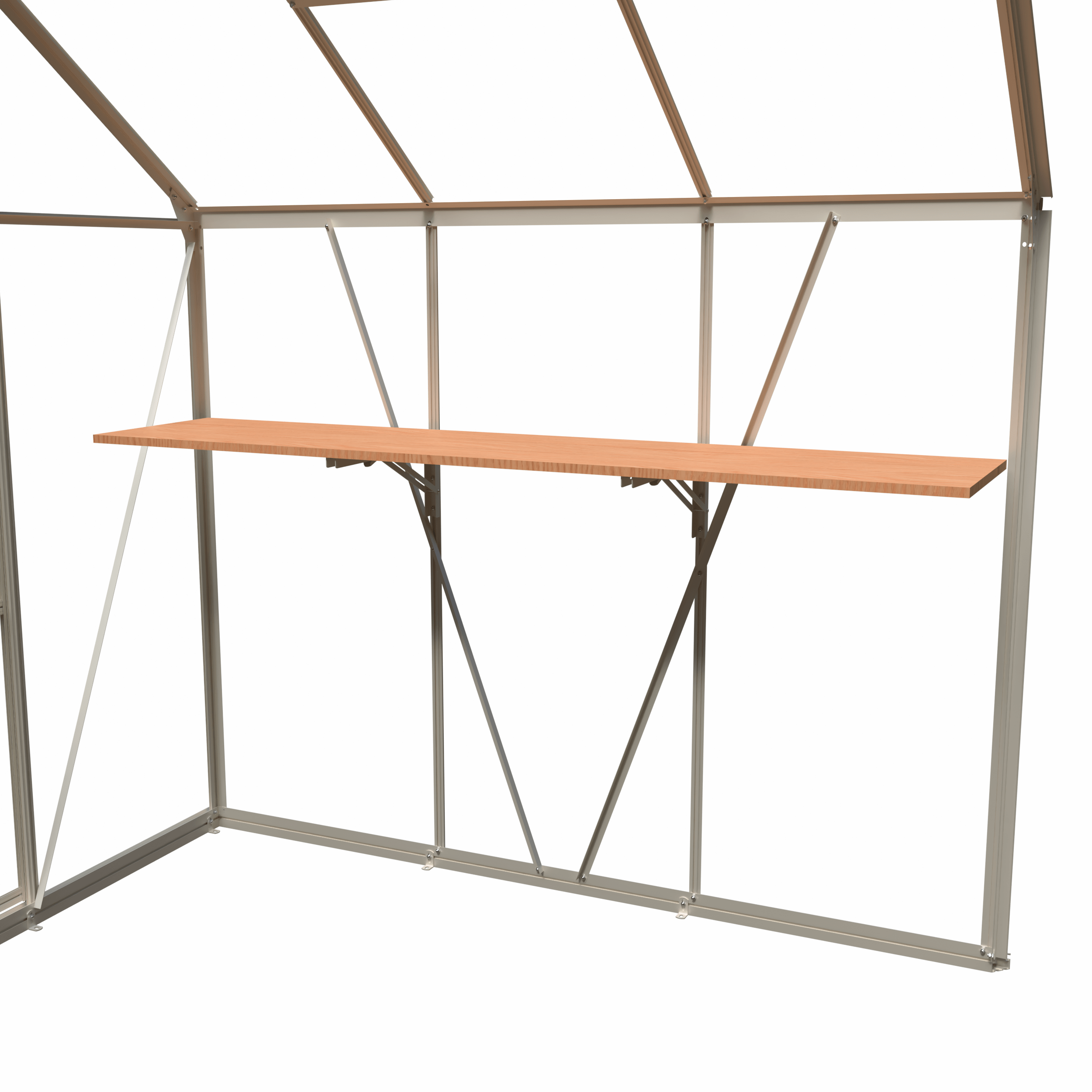Combineer hout met aluminium in je kas met de opklapbare steunen van Royal Well. Bevestig eenvoudig de planken met schroeven in de voorgeboorde gaten van de steun (deze schroeven zijn niet inbegrepen). Het bevestigingsmateriaal om de steun in de kas te monteren zijn wel inbegrepen. De opklapbare steunen zijn beschikbaar in de kleuren wit, zwart of groengrijs.