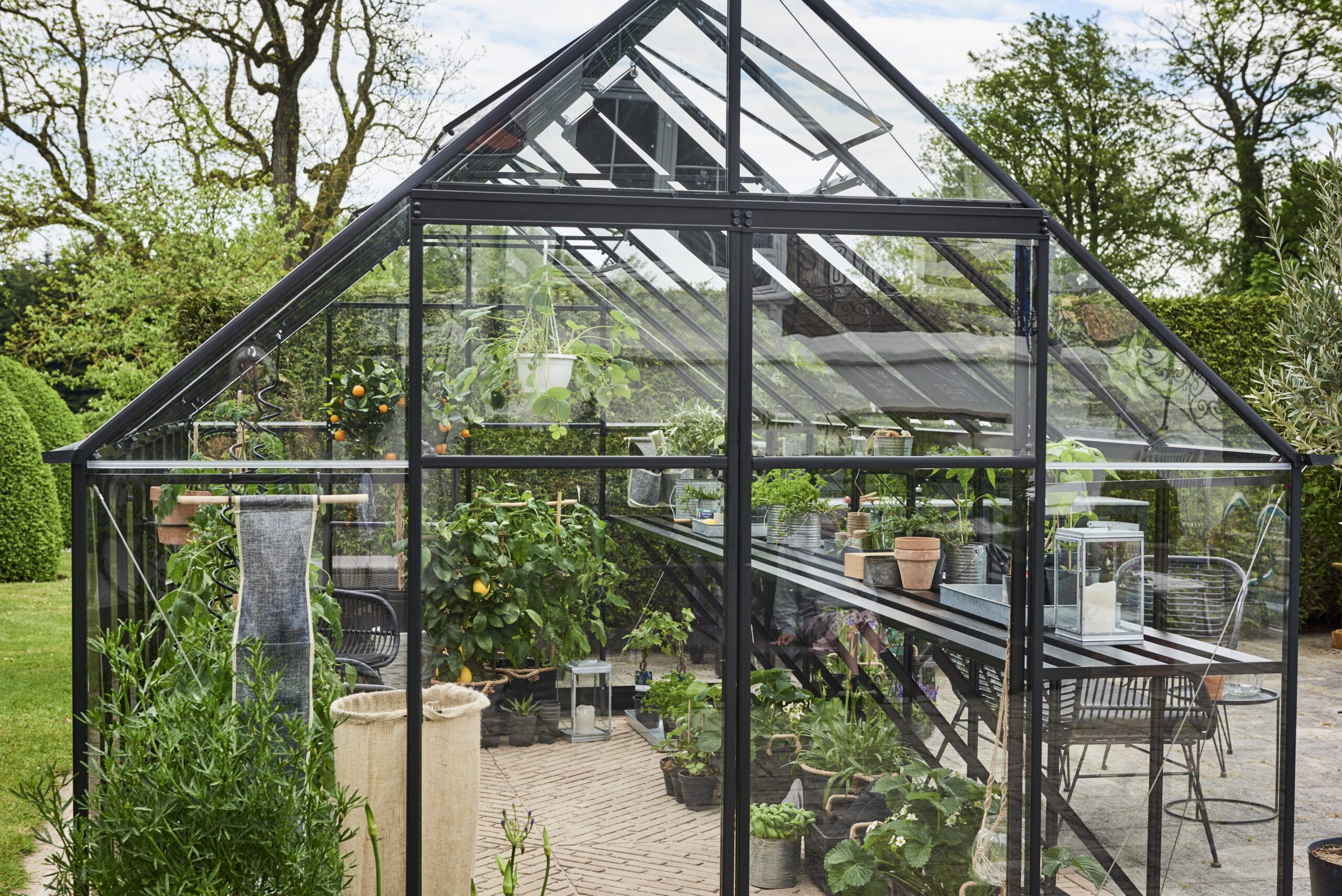 De Qube is een praktische kas met zeer fraaie uitstraling. Het gehele kasframe wordt samengesteld uit één aluminium vierkant (Qube) profiel. Het veiligheidsglas wordt vastgezet met tape en dubbele beglazingsstrip. Deze kas heeft twee 80 mm brede goten welke voorzien zijn van aansluitstukken voor de regenpijpen. Als accessoire is een set met 2 regenpijpen Ø 40 mm (tot op het maaiveld) leverbaar, bestel deze los mee. De schuifdeur met handgreep is 180 cm hoog en voorzien van een telescopische deurrail. De drempel is zeer laag waardoor de kas goed toegankelijk is. De Qube is standaard voorzien van een zwarte coating. De nokbalk, goten en optionele fundering worden geleverd in meerdere koppelbare delen. Voor de Qube is optioneel een zwart gecoate kweektafel leverbaar. Deze kweektafel is ca. 60 cm breed, de lengte is gelijk aan de binnenmaat van de langste zijde van de kas.